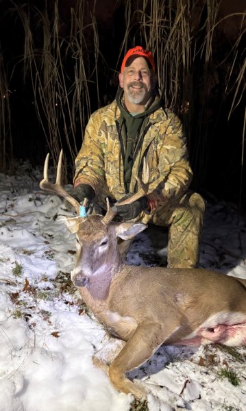 Mark harvested this 8-point while firearm hunting the evening of November 28 in Kent County, Michigan.